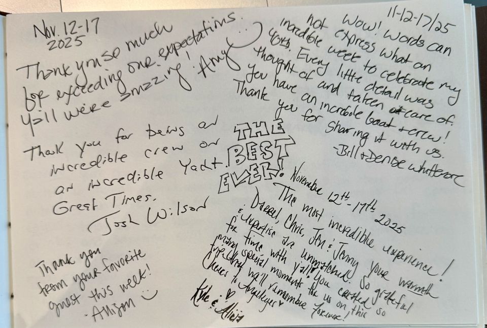 I couldn't have asked for a more spectacular first time yacht experience. The boat was amazing but to me, the crew made all the difference. Thank you for taking such good care of us. I don't know to go on without THIS LIFE. Hugs and see you again,