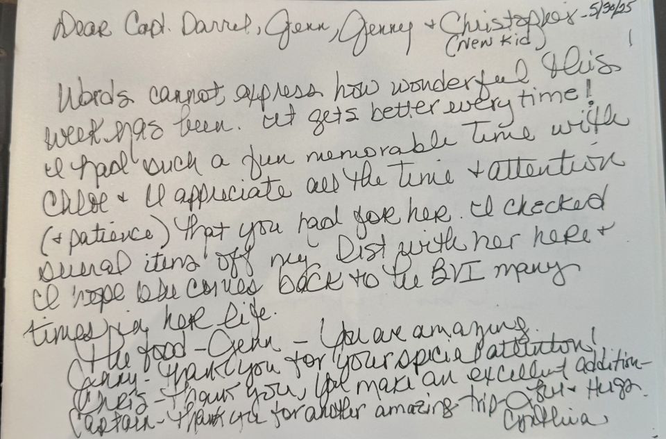 100% perfection this entire week! Darrel, Jenn, Remi and Jenny- true gems. We were spoiled all week with Jenn's meals and snacks. Thank you for allowing us to enjoy your gorgeous boat- we had an amazing week.